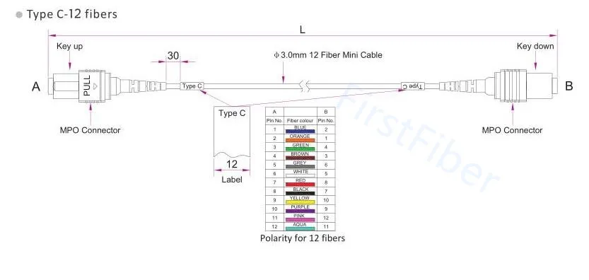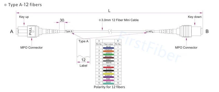 Single Mode MPO APC Patch Cord Cable 12 Cores