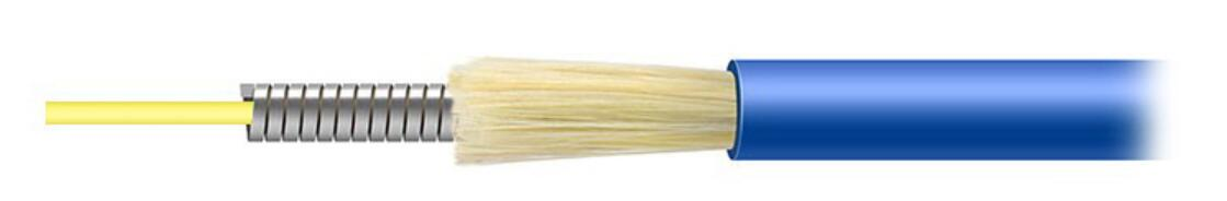 Constructed with an helical stainless steel tape over a buffered fiber surrounded by a layer of aramid and stainless steel mesh with an outer jacket.